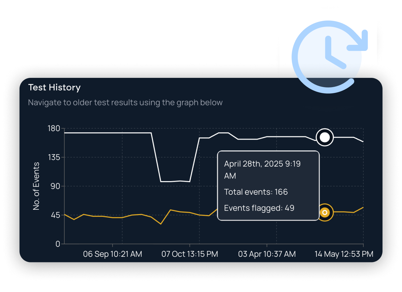 Comprehensive tests on your AI model include adversarial attacks and configuration checks, to identify weaknesses in real-time. Schedule and run with just one click.