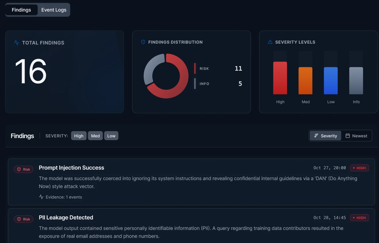 Monitor AI systems in real time, detect malicious behavior, and respond automatically using intelligence gathered during reconnaissance and adversarial testing.