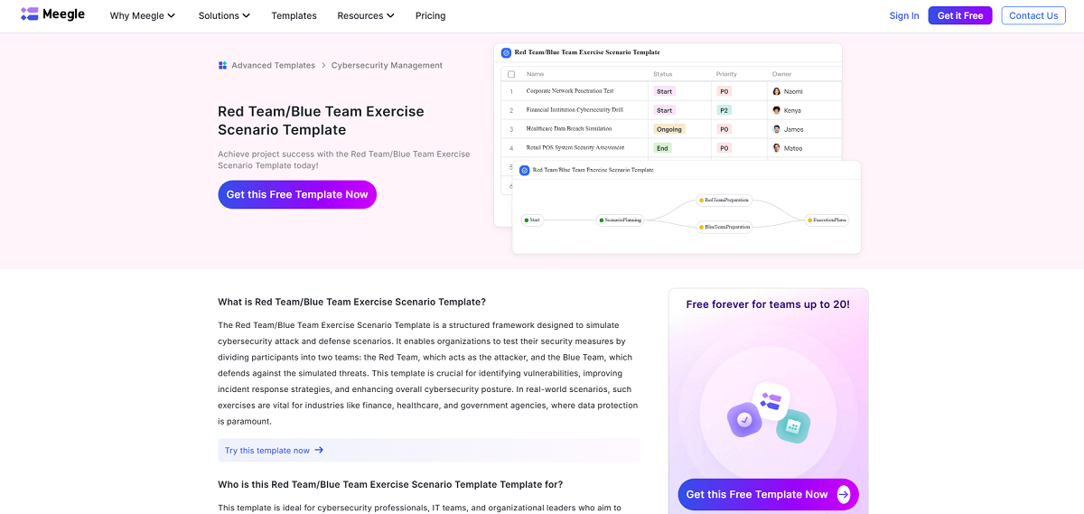 Every red team exercise needs strong project management to stay on track. This free template from Meegle requires an account to download, but it can be a helpful tool for everything from logging methodology to assigning tasks to various red team members.